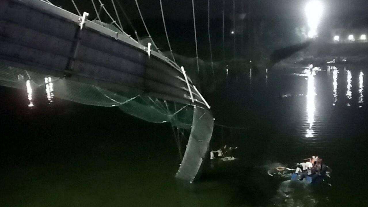 В Индии в городе Морби рухнул вантовый мост, на котором находились свыше 400 человек. Сообщается о гибели 60 человек. На месте трагедии работают сотрудники экстренных служб и правоохранители.