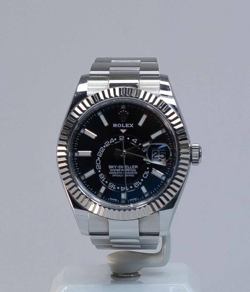 Rolex Sky-Dweller оценили в 5 млн тенге. Механизм с автоматическим подзаводом, безель состоит из белого золота 750-й пробы.