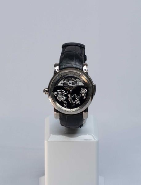 Также на аукцион выставили модель Ulysse Nardin Classic 789-80. Минутный турбийон (конструкция для повышения точности механизма) встроен в циферблат из авантюрина. Фигурки на циферблате вырезаны вручную из 18-каратного золота. Часы выпущены ограниченной серией – всего 30 экземпляров. Корпус выполнен из платины, но на нём имеются царапины, повреждён и ремешок.