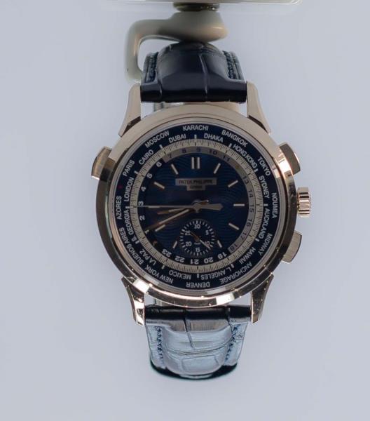 Стартовая цена Patek Philippe World Time Complicated Chronograph – 16 млн тенге. На циферблате использована особая техника гравировки гильоше.