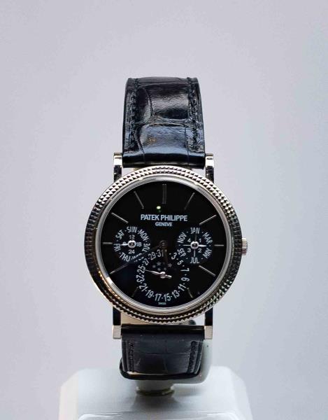Стартовая цена Patek Philippe Grand Complications Perpetual Calendar превышает 11 млн тенге. Выполнены из белого золота, браслет – из кожи крокодила. Механизм с автоматическим подзаводом.