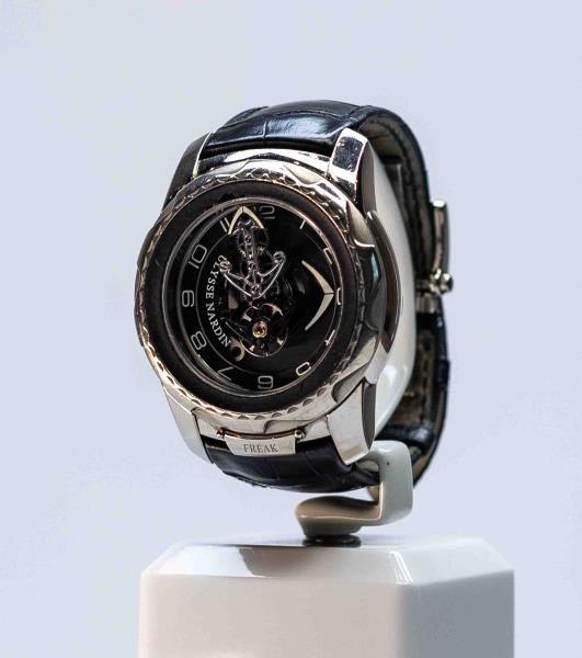 Наручные часы Ulysse Nardin Archive Freak Cruiser оценили в 20 млн тенге. Их корпус выполнен из белого золота весом 18 карат, правда, на нём имеются царапины. Часы водонепроницаемые.