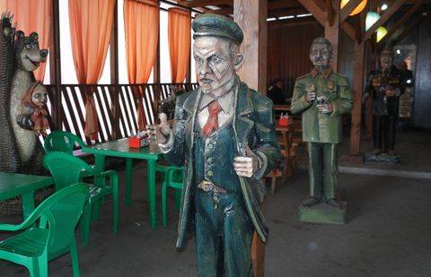 Также здесь можно встретить и Иосифа Сталина с его трубкой, и Леонида Брежнева, а так же Никиту Хрущёва, который стучит башмаком по трибуне.