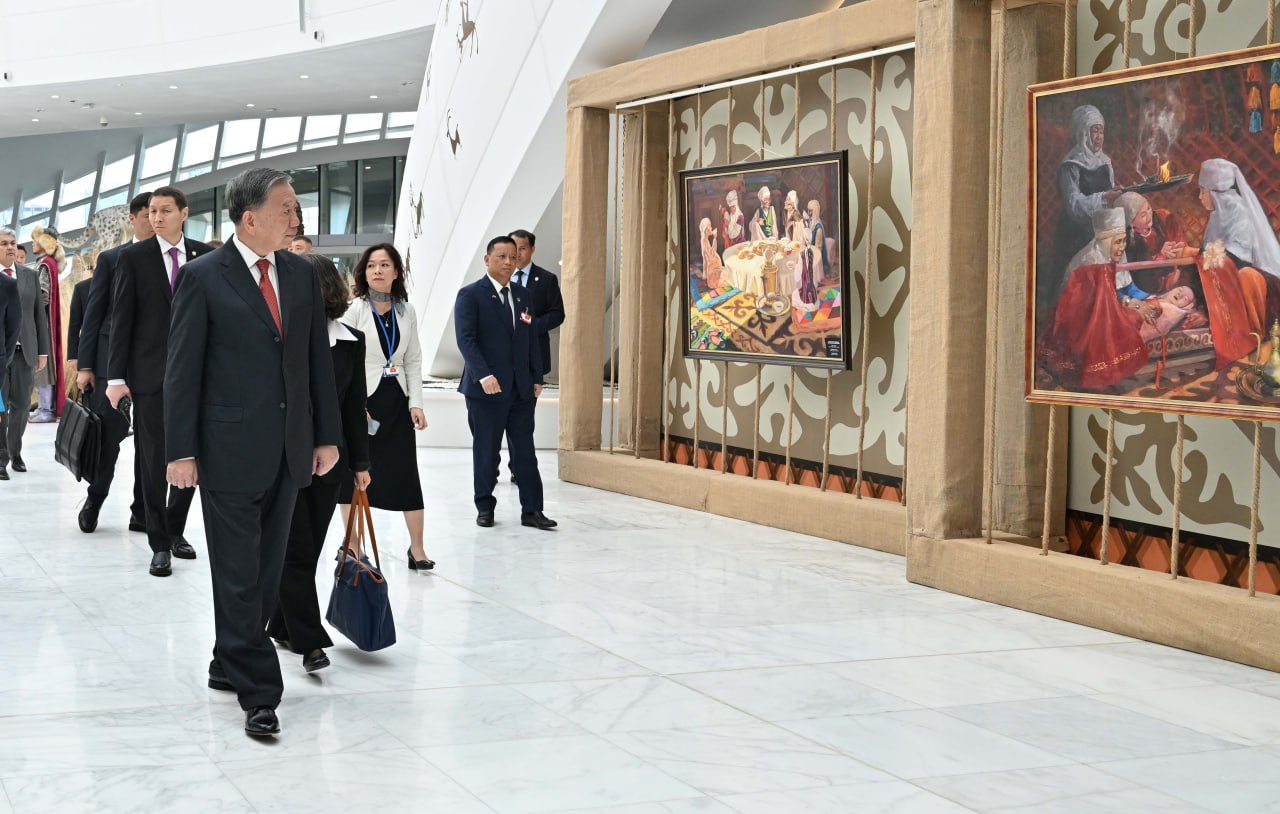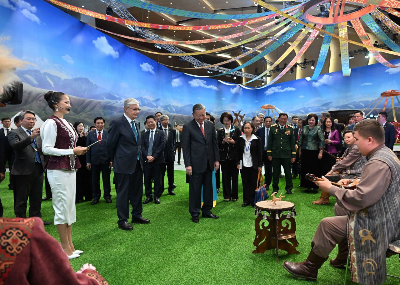 Генеральный секретарь ЦК Компартии Вьетнама То Лам, находящийся с государственным визитом в Астане, вместе с президентом Казахстана Касым-Жомартом Токаевым осмотрел выставку "Этноаул", посвящённую культурному наследию казахского народа, сообщает Акорда.