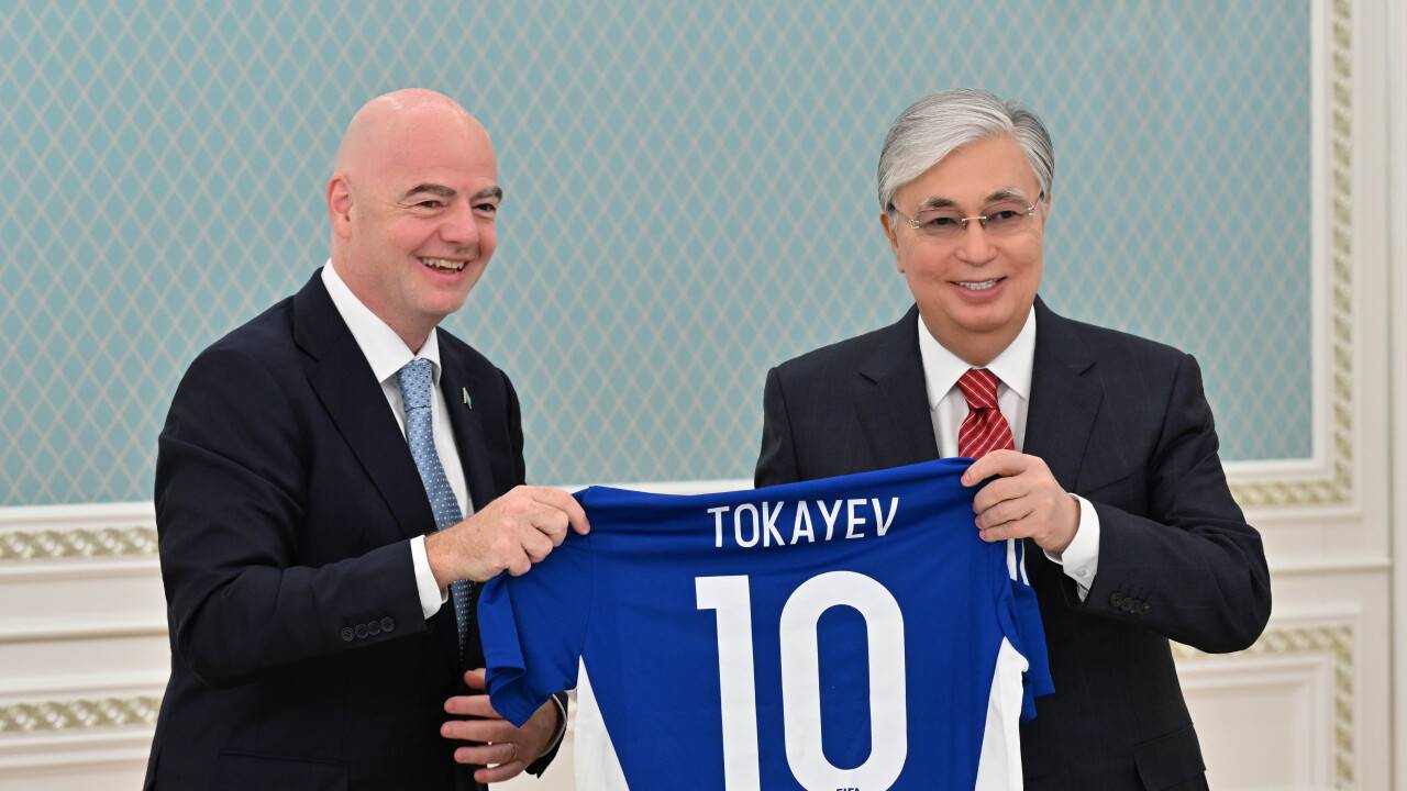 В заключение встречи президент ФИФА подарил Касым-Жомарту Токаеву именную футболку.