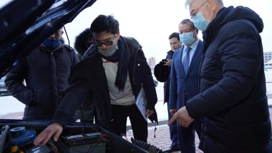 Санжар Тайжан вместе с командой своего стартапа модернизирует традиционные автомобили, заправляемые бензином, в электрические – на батарее. Прототип машины казахстанец презентовал министру.