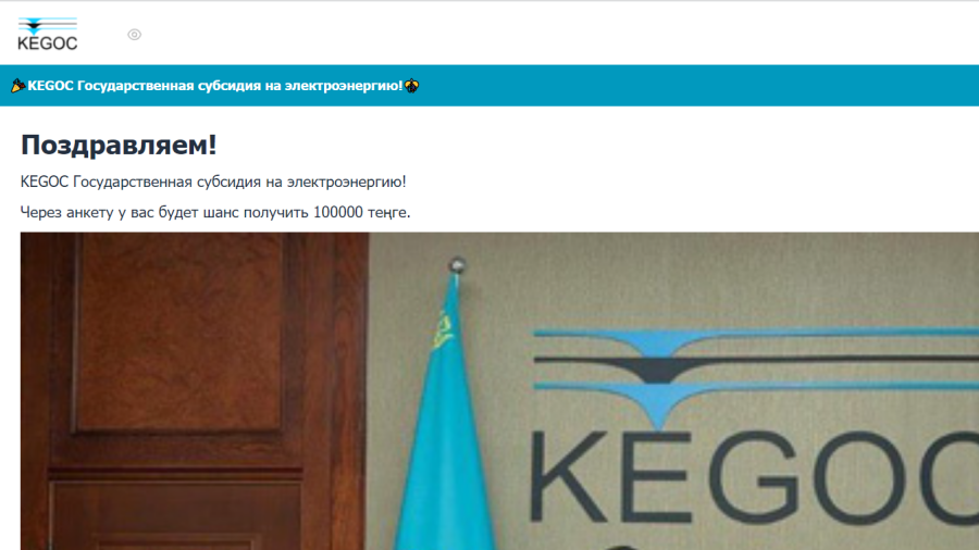 "11 апреля в сети наблюдается распространение мошенниками фишинговой ссылки с опросом со стороны АО "KEGOC", – говорится в сообщении.