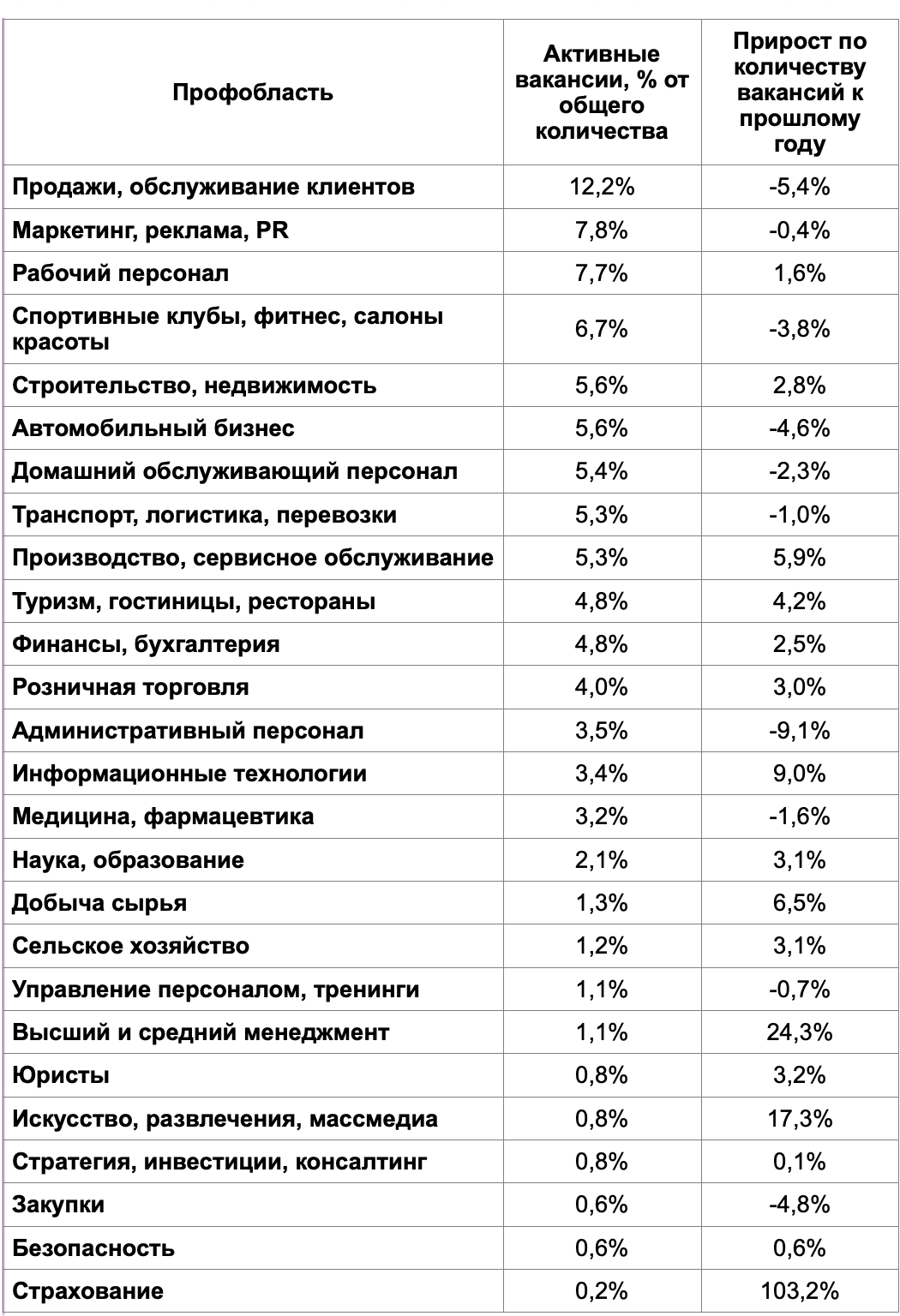 Тем не менее даже на фоне сокращения эти направления продолжают занимать значительную долю в структуре рынка и остаются востребованными среди работодателей.