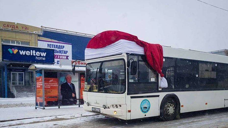Колпак Санты Клауса появился на одном из павлодарских автобусов, сообщает pavon.kz.