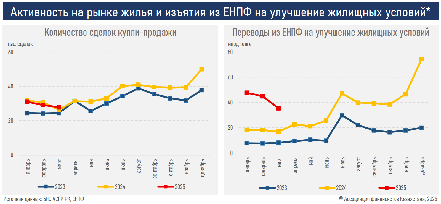 Также в ассоциации отметили снижение зависимости рынка от изъятий средств из ЕНПФ. В I квартале этого года не наблюдалось чёткой связи между активностью на рынке жилья и пенсионными изъятиями.