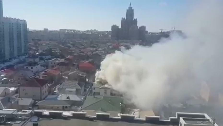 "Я уже сколько минут снимаю, а пожарных нет. Надо подсчитать, сколько пожарные едут сюда", – говорит голос за кадром.