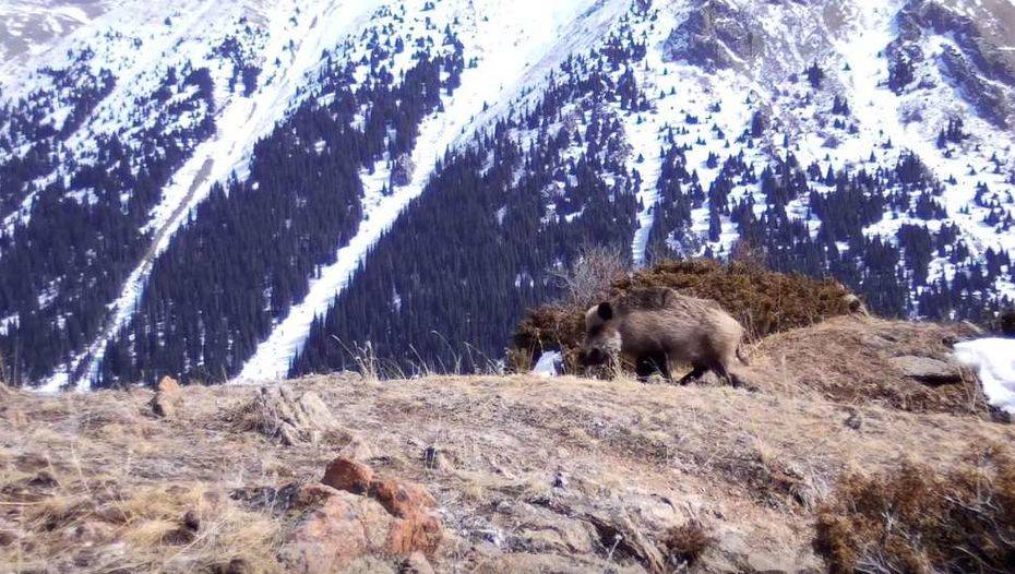 "В целях исследования диких животных, занесённых в Красную книгу РК, были установлены фотоловушки в местах их обитания. В результате на одну и ту же фотоловушку были зафиксированы 10 видов животных, четыре из которых занесены в Красную книгу РК. Это снежный барс, тяньшанский бурый медведь, каменная куница и птица – кумай. Помимо перечисленных животных, на объективы фотоловушки попались волк, лисица, кабан, барсук, заяц и гималайский улар", – рассказали в нацпарке.