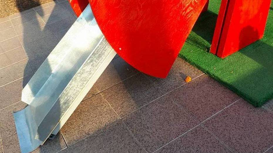 На фото женщина запечатлела горку, установленную под очень крутым наклоном.