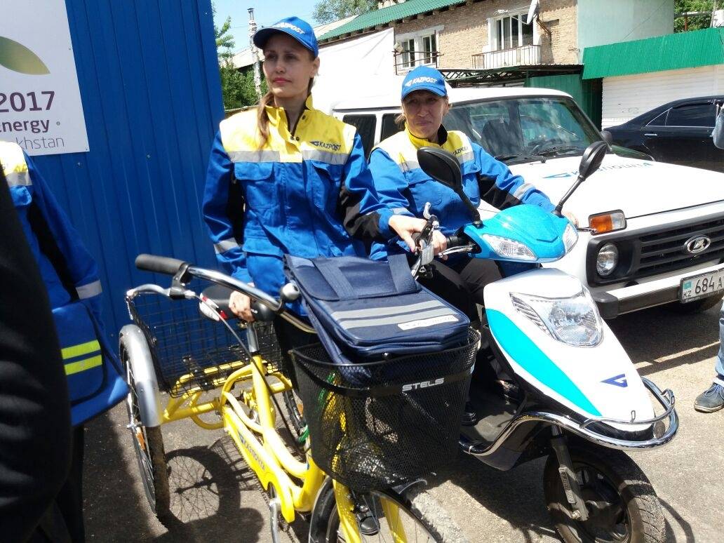 В посёлке Боралдай в пригороде Алматы АО "Казпочта" открыло первое мобильное отделение, работающее на энергосберегающих технологиях, а сотрудникам службы доставки почтового отделения выдали первые электроскутеры.