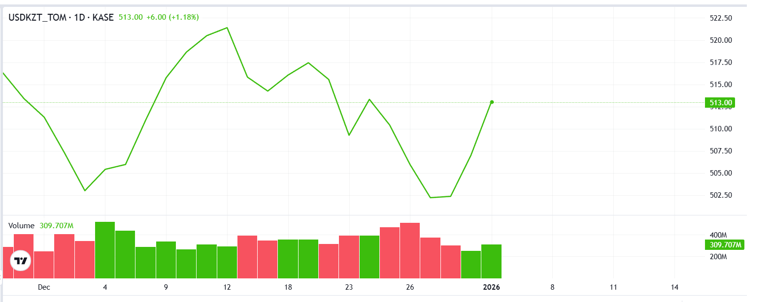 По итогам торгов на Казахстанской фондовой бирже 6 января курс доллара составил 512,83 тенге.