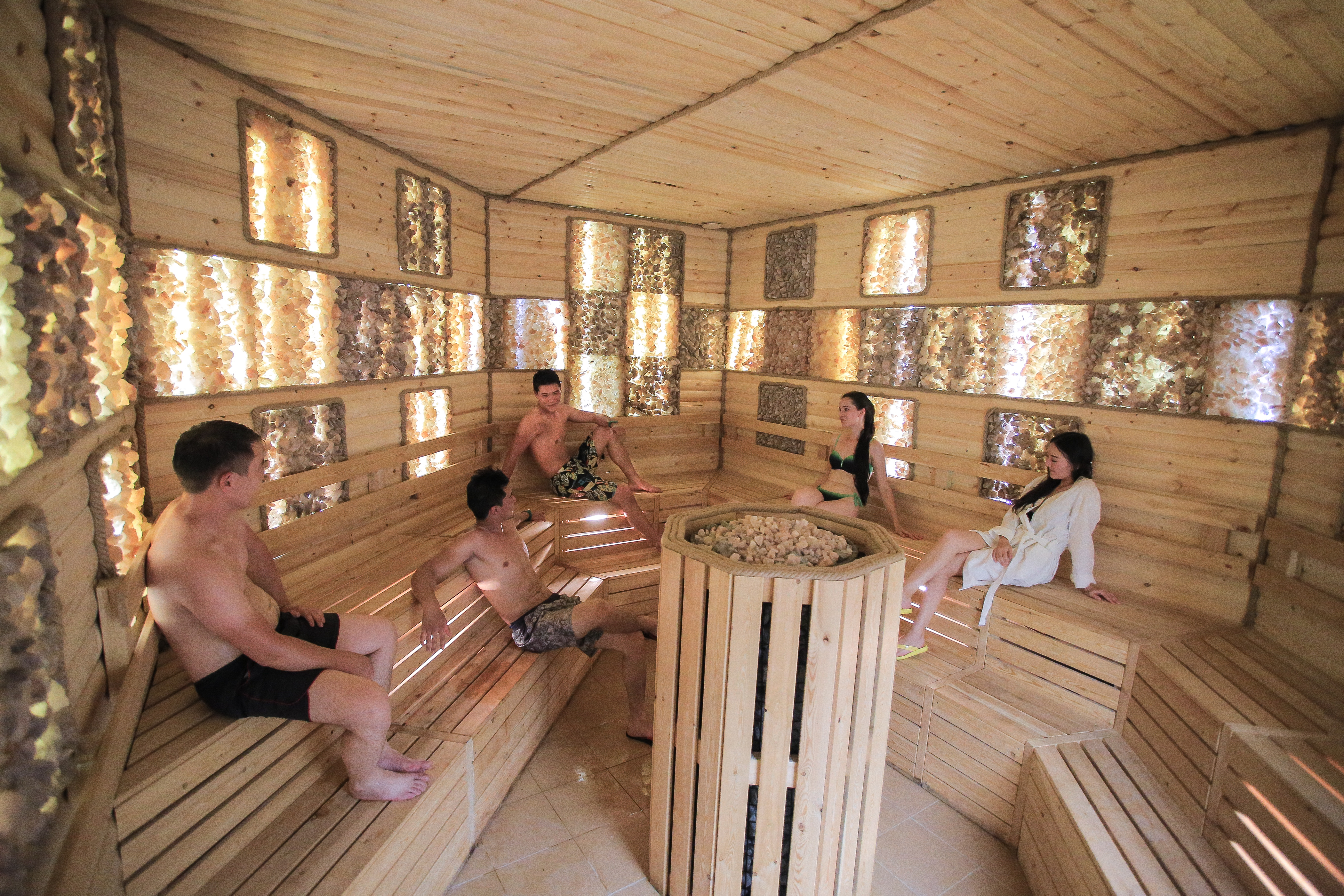 Хотя трудно сказать, что вызывает наибольший прилив эндорфинов. Водные горки, огромные волны в большом крытом бассейне, от катания на которых мгновенно улетучиваются стресс и усталость. Или волшебный массаж вкупе с другими спа-процедурами, от которых в голове и теле возникает ощущение лёгкости, почти невесомости. А можно просто прийти и долго греться в необыкновенных саунах с разными температурными режимами. Неспешно переходить из одной в другую, чувствовать, как целебное тепло проникает в каждую клеточку тела. В каждой свой температурный режим, интерьер и музыка – всё для создания особого настроения. В аквапарке Hawaii & Miami банный комплекс включает целых 10 удивительных пространств: традиционная русская – "Царская сауна", "Тянь-Шаньская", "Ханская" с троном, "Соляная" с лечебными свойствами для дыхательной системы, "Тропическая сауна" с аромамаслами, финские сауны и турецкие хамамы.