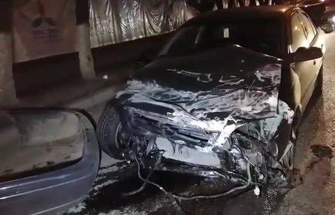 На высокой скорости Opel пытался проскочить между тремя рядами машин. В итоге зацепил Toyota Camry, так что у той отлетела шаровая и элементы подвески.