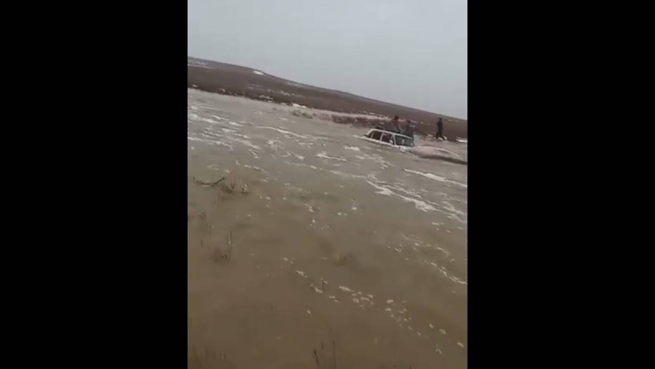 2 февраля в мессенджерах распространилось видео, на котором засняты люди, пытающиеся укрыться от половодья на крыше белого легкового автомобиля. Оказалось, что инцидент произошёл в селе Бабайкорган. Людей застала большая вода, и чтобы спастись, им пришлось забраться на собственную машину.