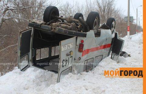 "Скорая помощь ехала с района Жазиры на станцию скорой помощи. В районе лыжной базы "Динамо" УАЗ подрезал другой автомобиль. Водитель скорой помощи, уходя от столкновения, повернул направо, в результате чего машина перевернулась", - рассказал механик станции "скорой помощи" Ерген Хангереев.