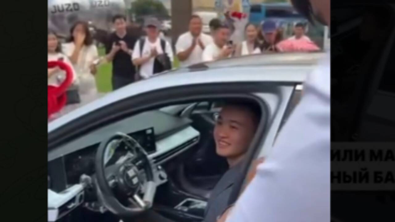 Выпускнику также подарили машину. Но этот подарок уже от подготовительного центра, где Енсебек готовился к тестированию.