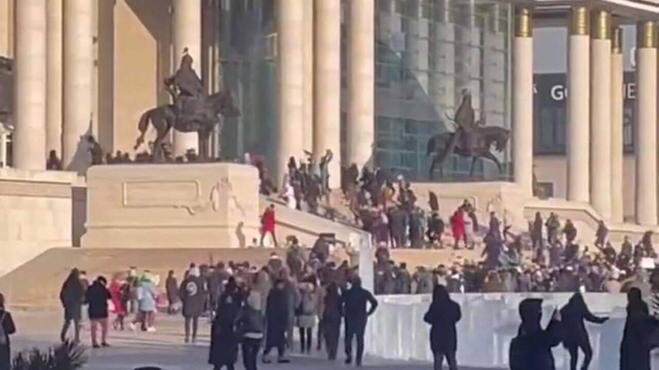 В Facebook появилось видео, на котором толпа врывается в здание правительства Монголии.