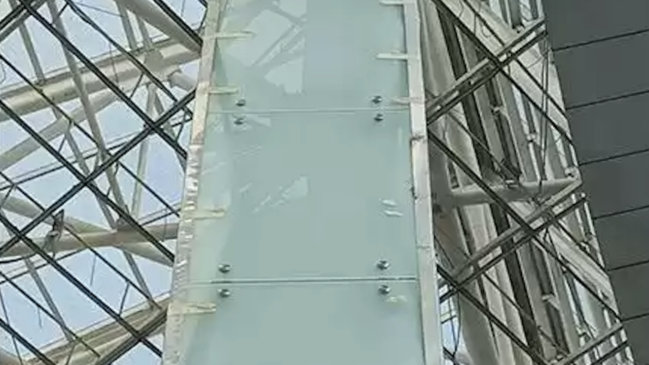 Скотч используют для временной фиксации профиля до момента полного склеивания с поверхностью стекла. Как отметили в компании, обычно эта процедура занимает пару дней. Скотч на колонне уже сняли.