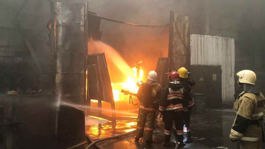 Пожарные тушат огонь в цеху / Фото ДЧС Алматы