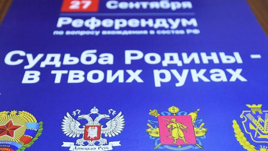 Голосование проходит с 23 по 27 сентября. По мнению инициаторов референдумов, такое решение обезопасит территории непризнанных республик Донбасса (самопровозглашённых ДНР и ЛНР) и "восстановит историческую справедливость". Территорию Донецкой, Луганской, Запорожской и Херсонской областей Украины сейчас частично контролируют военные РФ и пророссийские вооружённые формирования.