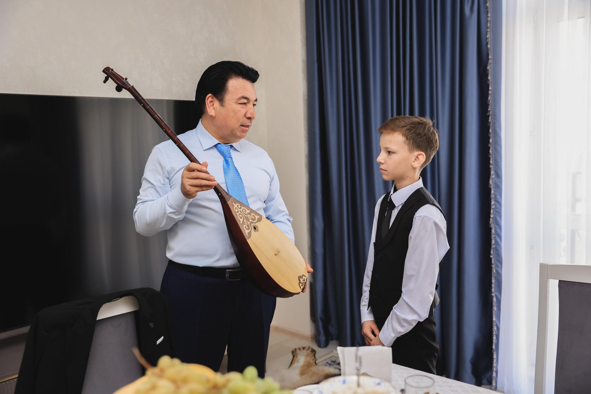 Артёму подарили книги о великом Абае, истории Казахстана и домбру. Мальчик отметил, что теперь, имея свой инструмент, сможет быстрее научиться на нём играть.