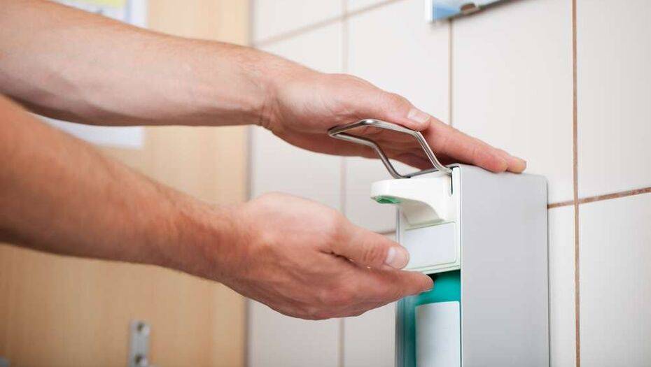 - Наличие санитайзеров с кожным антисептиком у входа, в холлах, у входа в лифты, санитарные узлы.