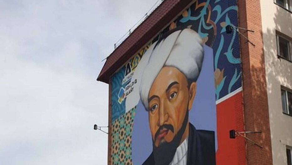 В Нур-Султане мурал с изображением учёного Востока, философа аль-Фараби нарисовали на фасаде одного из домов на улице Сатпаева.