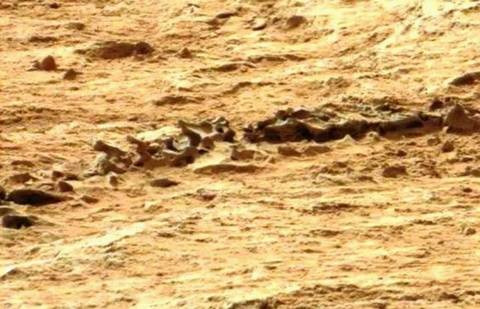 Марсоход Curiosity отправил на Землю сенсационные снимки с Красной планеты, на которых изображены останки неизвестного существа. Изучив фотографии, у исследователей возникла ассоциация с останками рептилии. Учёные выдвигают теории, как ящер попал на Марс.