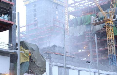 Сразу же после начала задымления к строящемуся высотному зданию подъехали три пожарных машины. Однако улицу, где находится небоскрёб, перекрывать не стали.