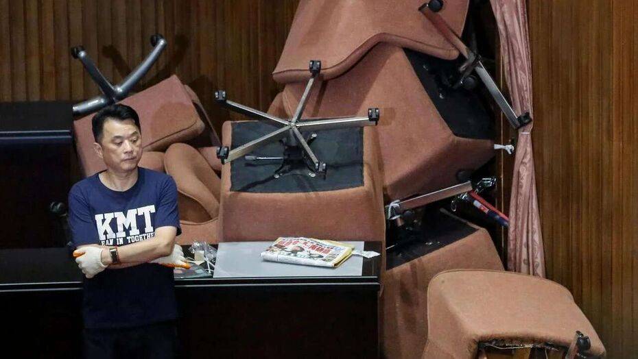 Представители "Гоминьдана" начали свой протест в парламенте 28 июня и оставались там до понедельника, блокируя вход в главную палату законодательного органа с помощью цепей и стульев.