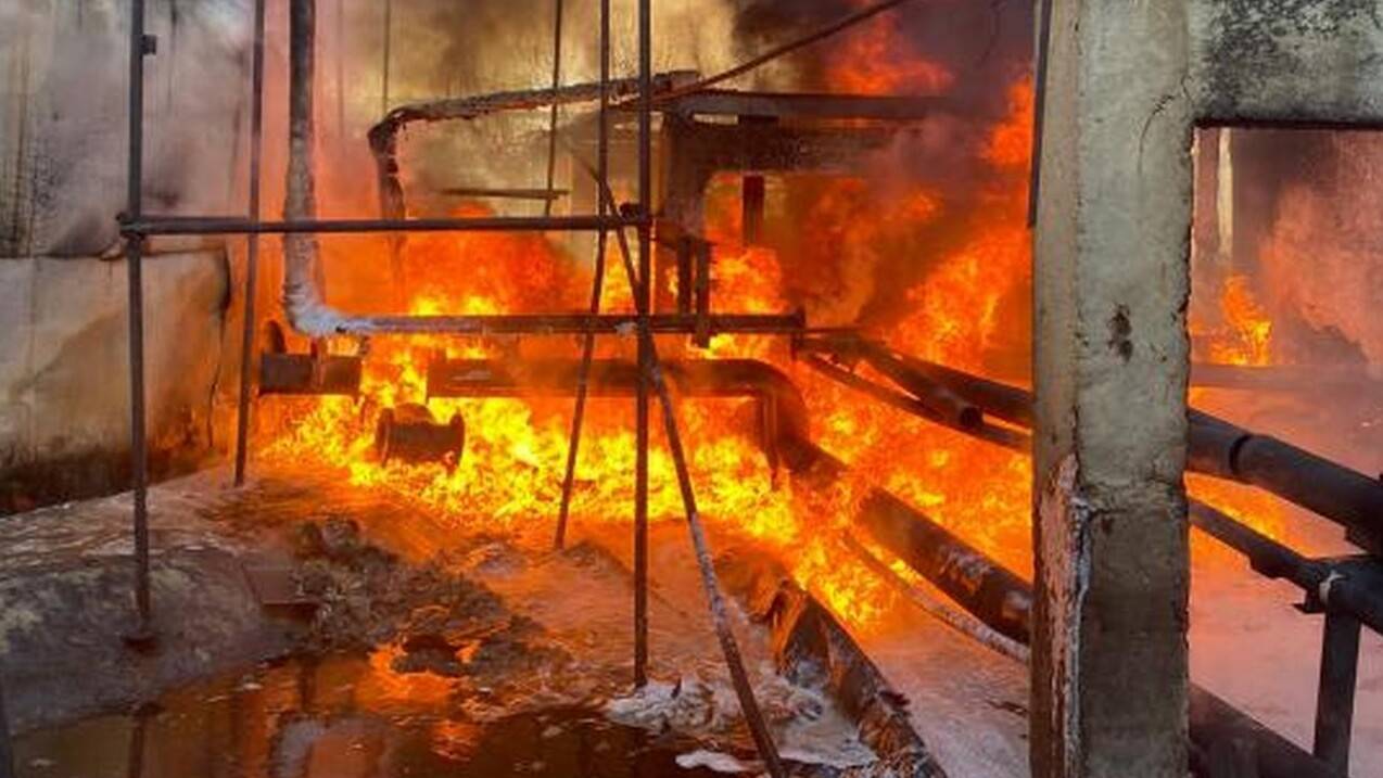 На территории предприятия в двух резервуарах и прилегающей части горело моторное масло. Площадь возгорания составила около 64 м2.