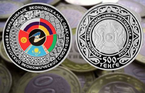 "Национальный Банк Республики Казахстан с 13 ноября 2015 года выпускает в обращение памятные монеты "Евразийский экономический союз", посвященные годовщине функционирования Евразийского экономического союза, из серебра "proof" качества номиналом 500 тенге. Памятные монеты "Евразийский экономический союз" изготовлены в соответствии с предложением Евразийской экономической комиссии по синхронному выпуску памятных монет в государствах - членах Евразийского экономического союза к первой годовщине Союза. Оборотная сторона монеты выполнена с применением тампопечати", - говорится в сообщении, распространённом пресс-службой Национального банка.