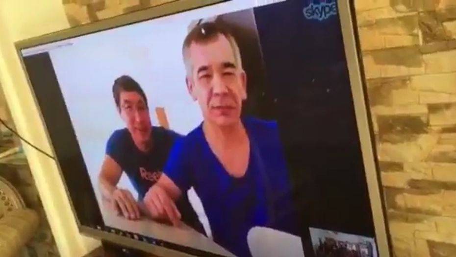 На видео гости танцуют и салютуют человеку, который очень похож на экс-мажилисмена Аманжана Рыскалиева. Откуда он выходит на связь по скайпу, неясно, но он не выглядит подавленным из-за того, что объявлен в розыск - наоборот, разделяет веселье с собравшимися.