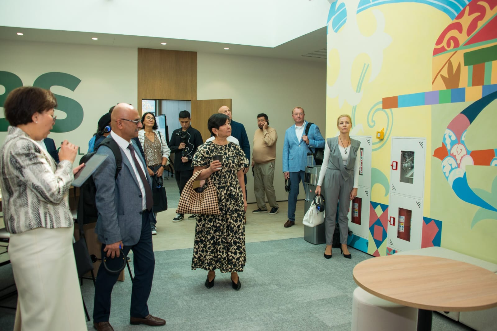 В торжественной церемонии открытия приняли участие аким города Алматы Дархан Сатыбалды, вице-министр науки и высшего образования РК Гулзат Кобенова, глава группы компаний "Верный капитал" Айдан Аканов, а также лидеры бизнес-сообщества, топ-менеджеры международных компаний, дипломаты и академические партнеры Университета Нархоз.