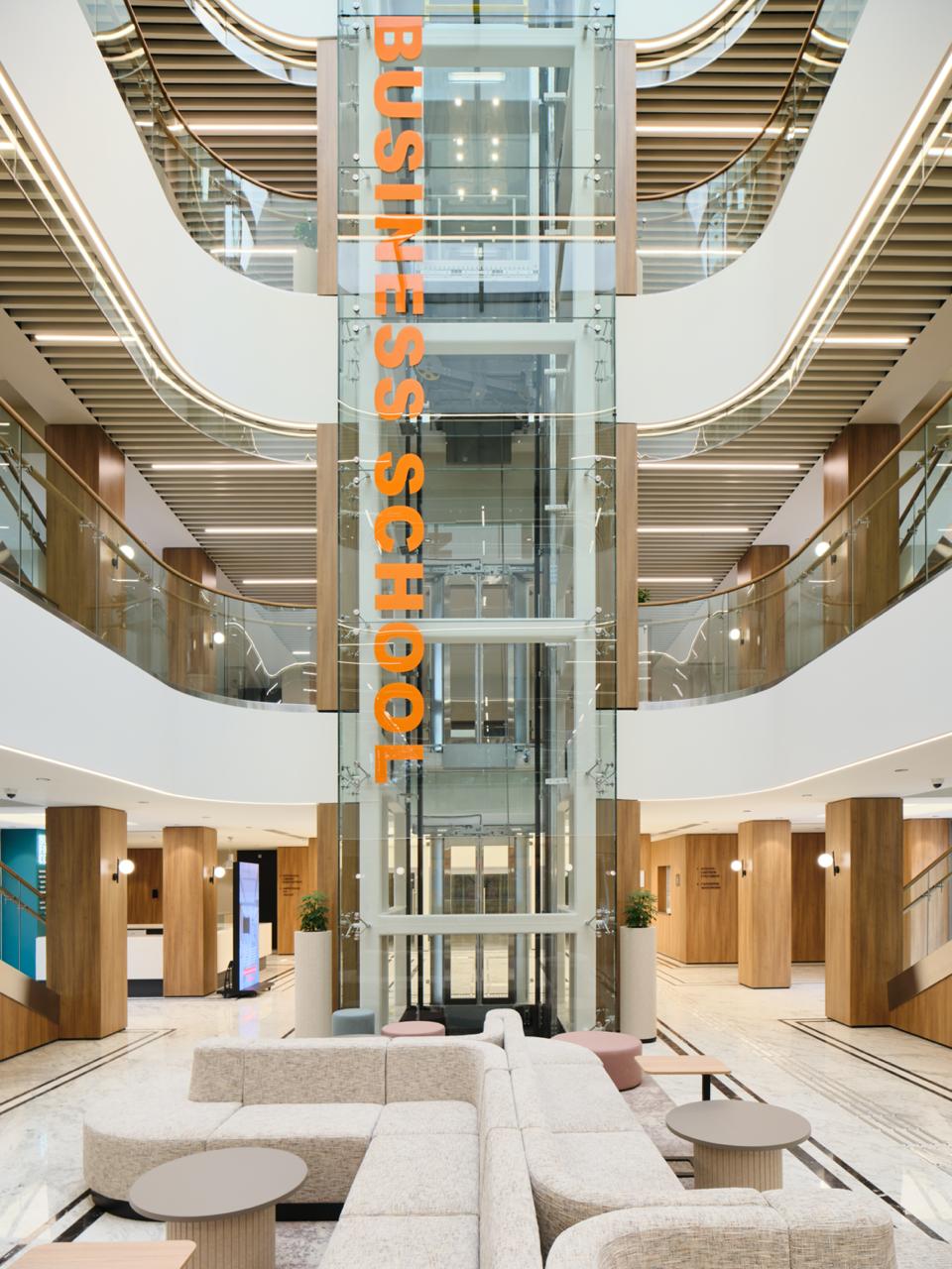 Новый кампус – результат масштабной реконструкции старого здания с возведением нового корпуса, его площадь составила 6 700 м². Здание объединяет в себе преемственность и инновации: дизайн фасада перекликается с основным корпусом университета, а внутреннее пространство спроектировано как "живая экосистема", стимулирующая активные дискуссии и обмен мнениями.