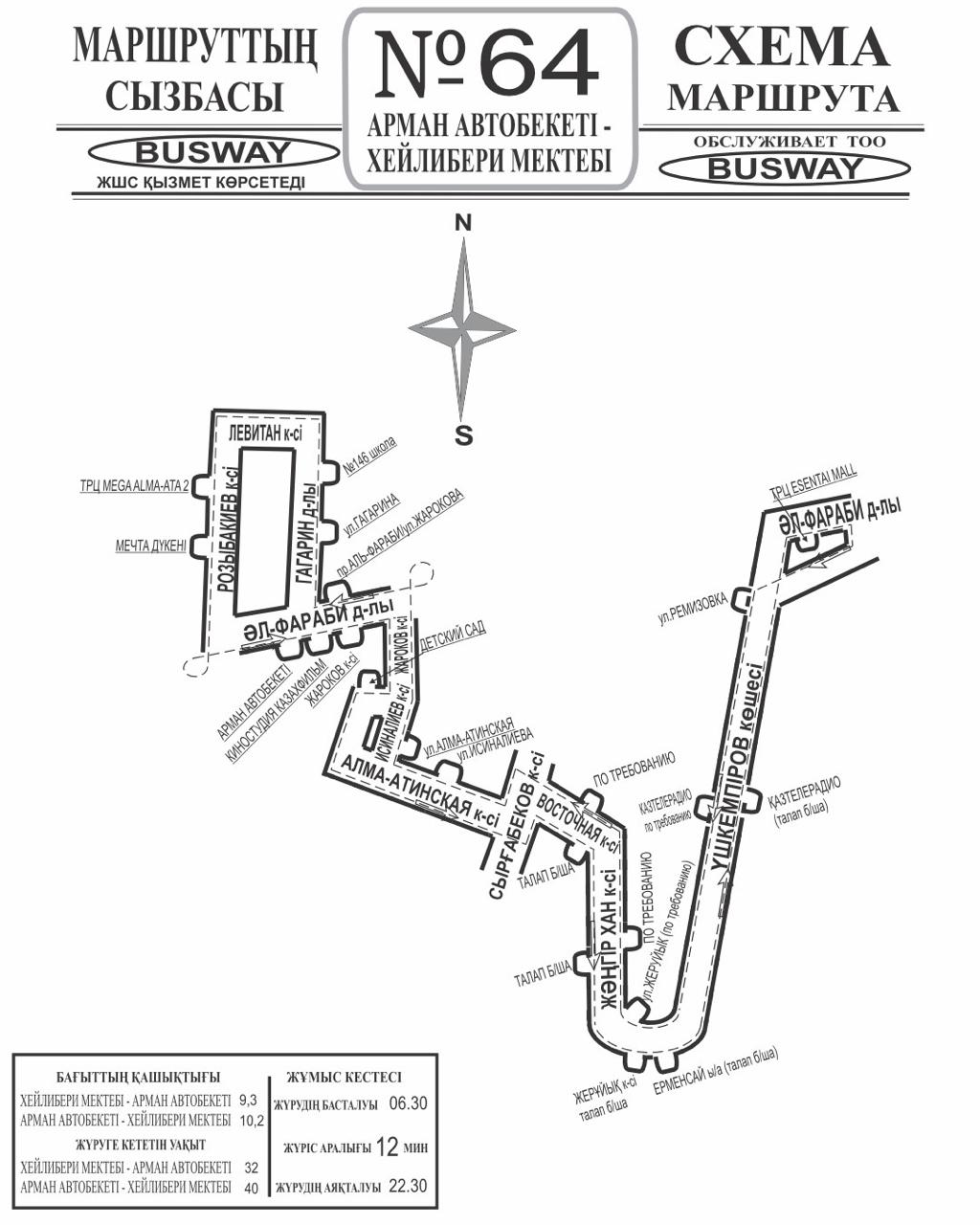 Схема движения автобуса № 64