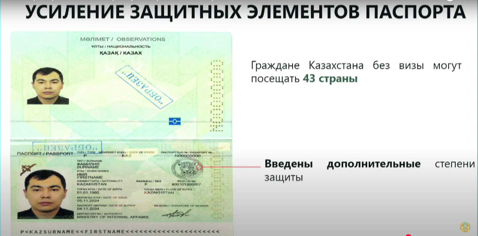 В казахстанский паспорт добавили новый элемент защиты, сообщил заместитель министра внутренних дел Бауржан Аленов на заседании правительства.