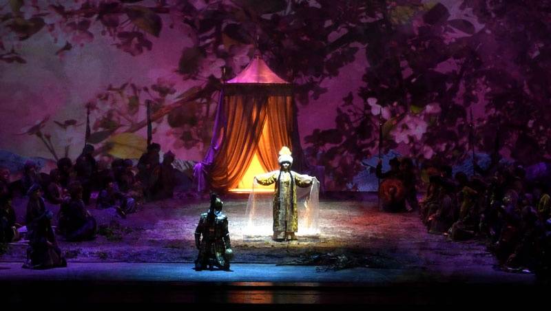 Достояние золотого национального фонда - опера Евгения Брусиловского "Кыз Жибек" была поставлена на сцене Большого зала театра оперы и балета "Астана Опера".