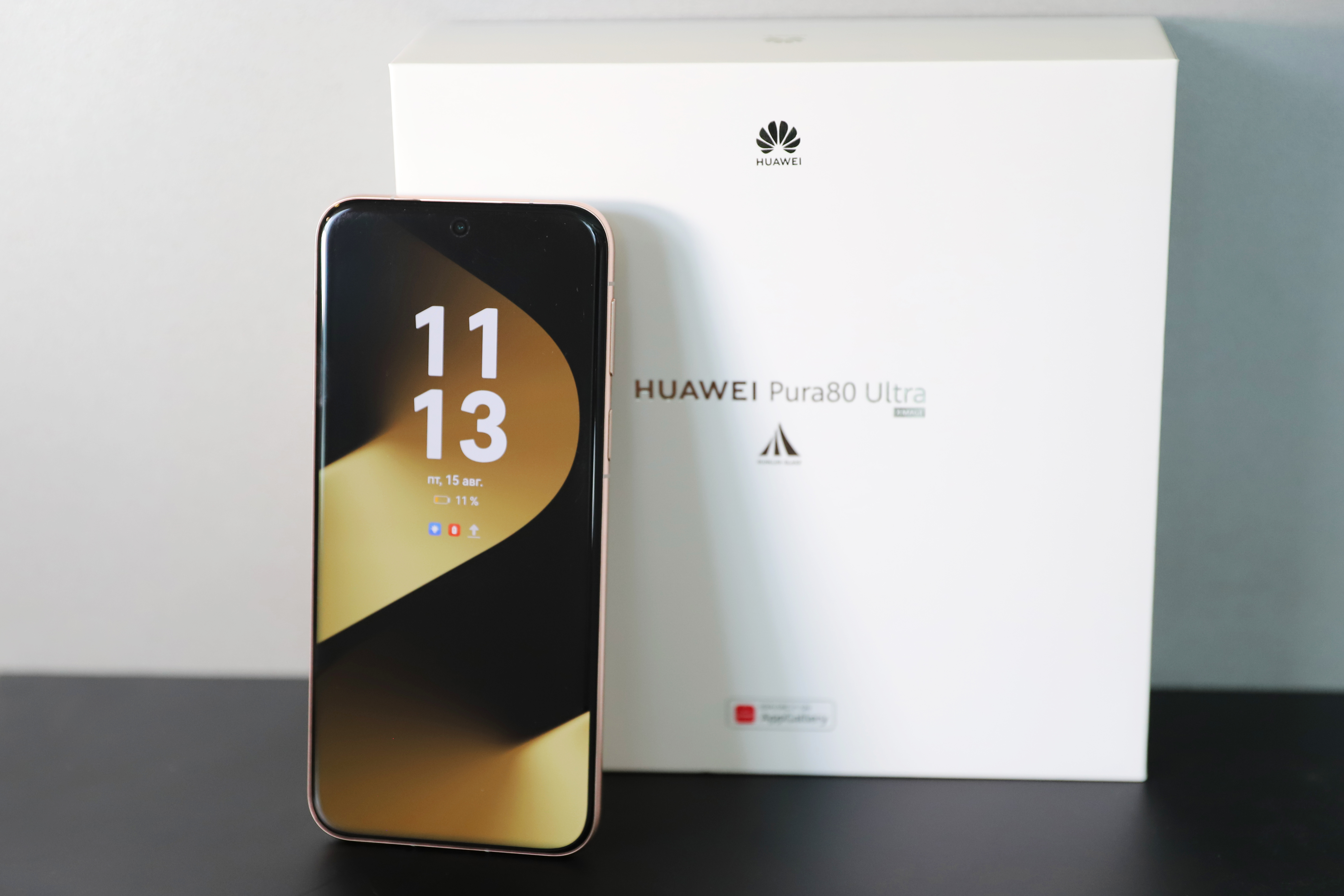 В редакцию Informburo.kz на тест-драйв попала модель Pura 80 Ultra, это флагман с заметным дизайнерским акцентом. Золотистые элементы на обрамлении объективов и сияющая глянцевая поверхность сразу дают понять, что перед нами премиум-устройство. Такой смартфон обращает на себя внимание даже без включённого экрана.