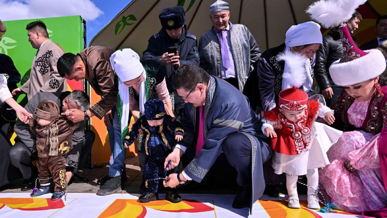 Аким области принял участие в церемонии тусаукесер, которую провели сразу для 180 малышей в честь 180-летия Абая.