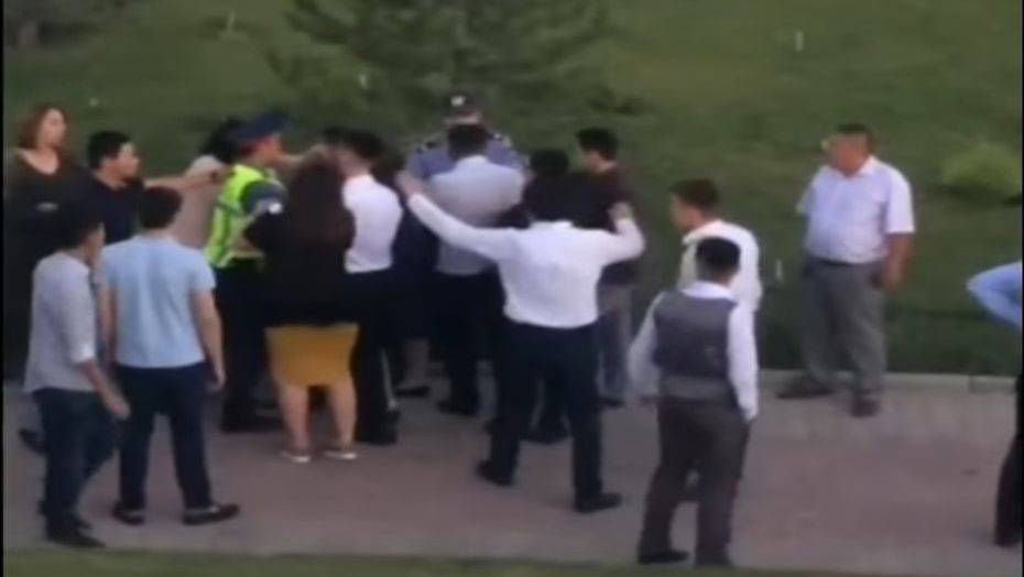 В Шымкенте кульминацией выпускного бала стала массовая драка у памятника Байдибек би. В соцсетях распространилось видео, снятое очевидцами, на котором выпускники дерутся между собой. Полицейские и, видимо, родители пытаются усмирить молодёжь.