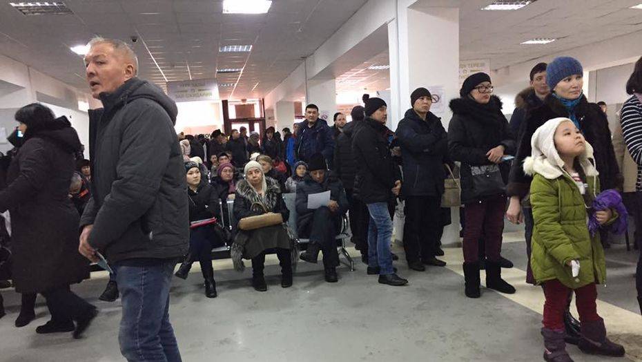 "Я здесь уже более трёх часов стою. Мне надо прописать своих сестёр. Узнать подробности по прописке у сотрудников не получается", – говорит одна из посетительниц по имени Макпал.