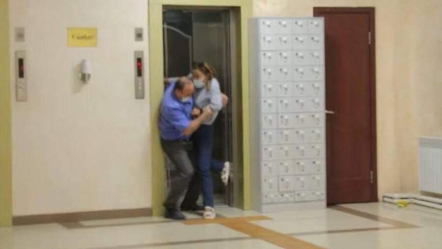 Охранника, который вынес журналистку телеканала "Хабар24" из здания акимата Алатауского района Алматы, временно отстранили от работы, сообщил аким района Азамат Калдыбеков.