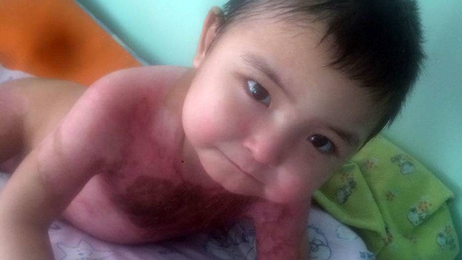 Мальчик опрокинул на себя кастрюлю с кипящим бульоном. Площадь ожога тела составила 80%. 30 ноября прошлого года его привезли в больницу. Врачам удалось спасти малыша и пересадить ему кожу.