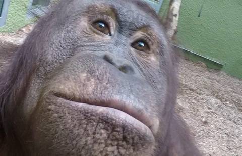 Две самки орангутана из британского зоопарка научились пользоваться видеокамерой и делать селфи, сообщается на сайте зоопарка.