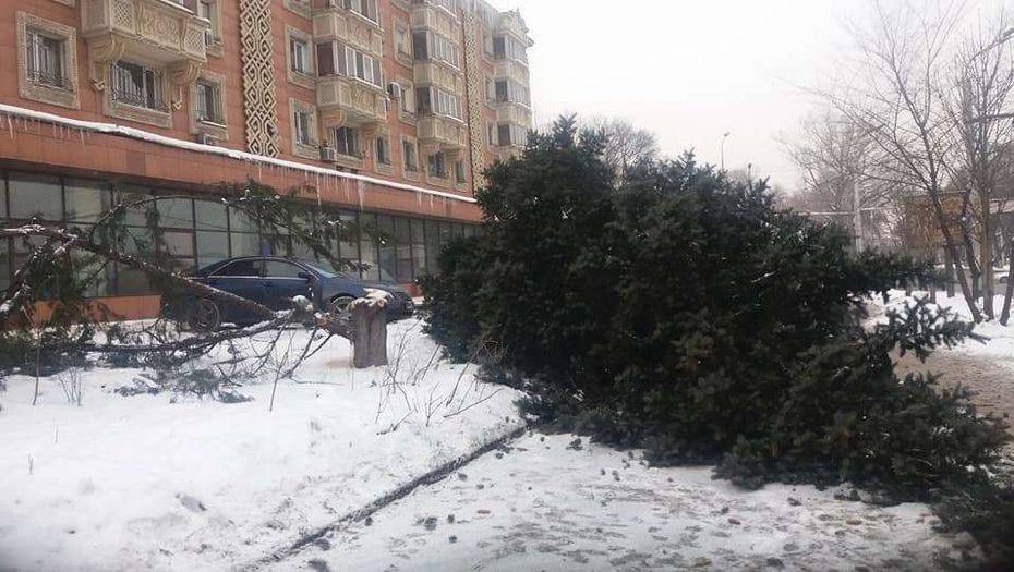 По данным управления природных ресурсов и регулирования природопользования Алматы, 8 февраля поступило обращение о вырубке двух деревьев от жителей жилого дома по адресу: проспект Райымбека, 100. Во время обследования с выездом на место сотрудники акимата увидели, что вырублены ель тянь-шанская и туя. Разрешение на это в управлении не выдавали.
